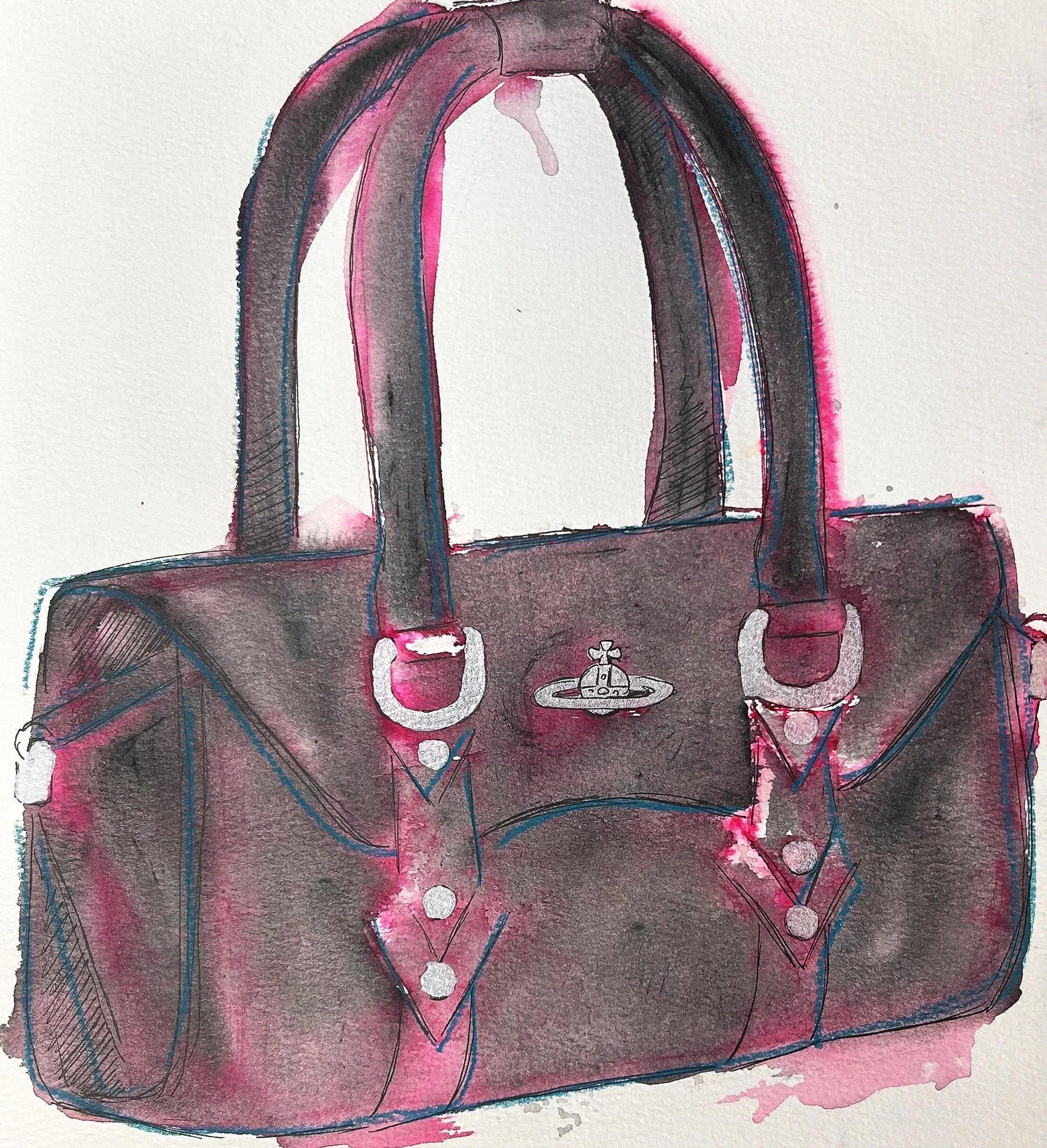 Bettina Mini Crossbody, watercolor and pencil, 11 x 8.5